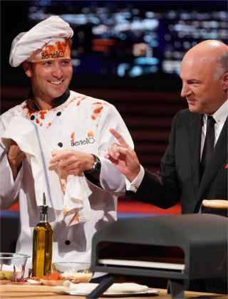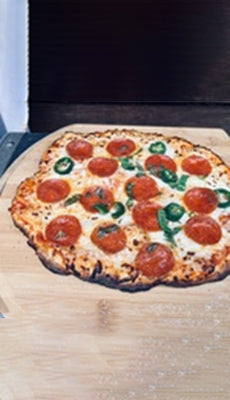 Other backyard pizza ovens have single burners that cook from either above or below. The problem with this is that pizza is a two-layer food. The crust on bottom, toppings (cheese, sauce, meat and veggies) on top. Heating from just above or below short changes one or the other and makes it more difficult to properly cook each. The result can be either burnt crust or undercooked toppings. Bertello solves this problem with the exclusive “FlameThrower” Dual Burner System, two separate burners that heat the stone from underneath and cook the toppings from above. The premium, full length “Under-The-Stone” burner extends fully from back to front to heat the stone evenly for consistent crust-cooking performance. The second burner, the “Over-The-Toppings” burner resides above the pizza in the back of the oven where it ensures the toppings get properly cooked. Only Bertello offers this FlameThrower Dual Burner System! Note: Cooking pizza is different from grilling a burger or steak on a grill where you can flip the food to cook both sides. You can’t flip a pizza. That’s why we created the FlameThrower Dual (Over-and-Under) Burner system!